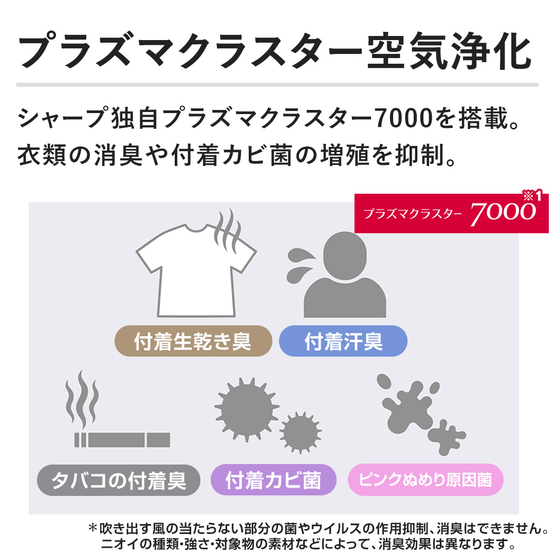 【プラズマクラスター空気浄化】シャープ独自プラズマクラスター7000を搭載。衣類の消臭や付着カビ菌の増殖を抑制。