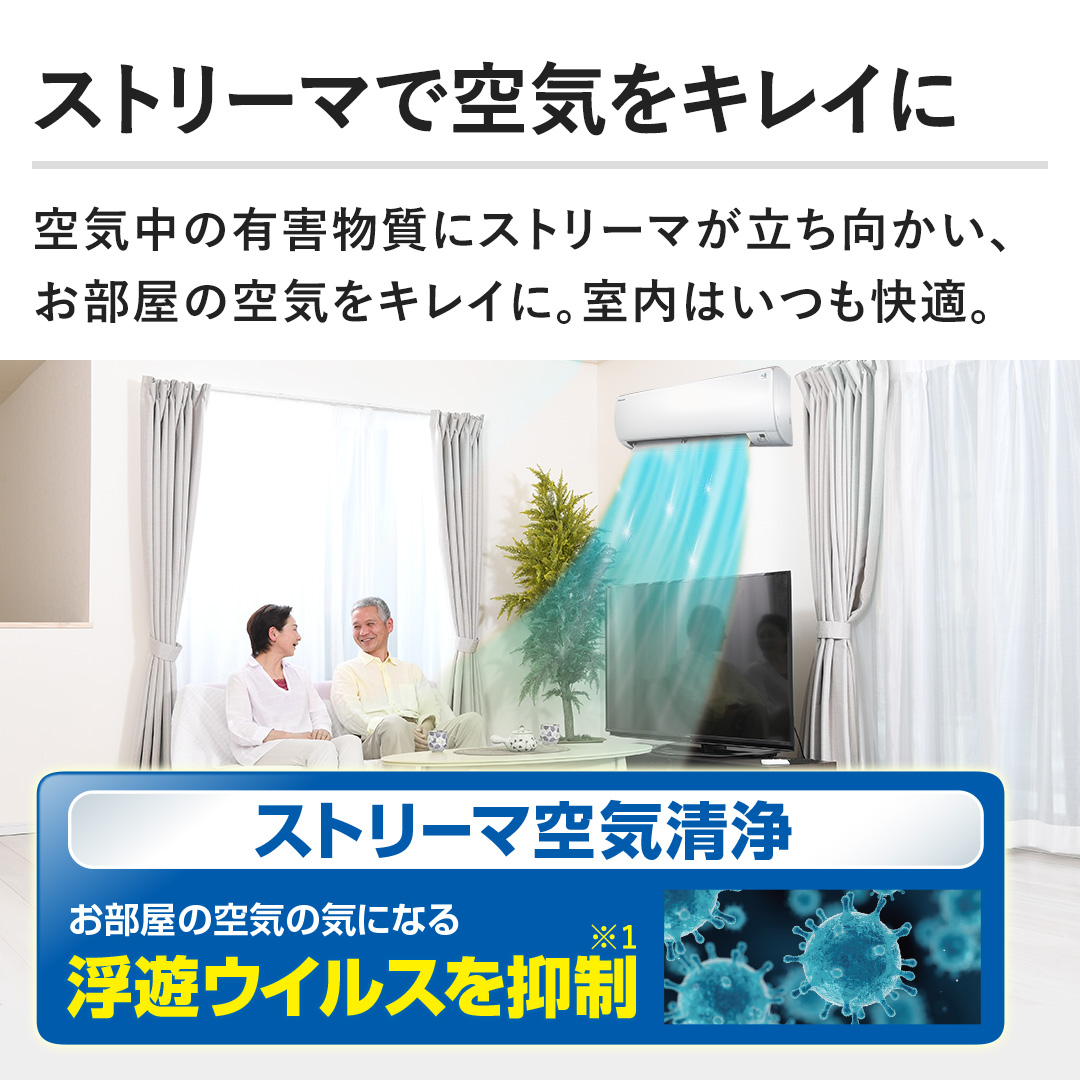 自動、冷房、暖房、除湿(ドライ)、送風の5つの運転モードに加え、ストリーマ空気清浄機能などを搭載しています。
