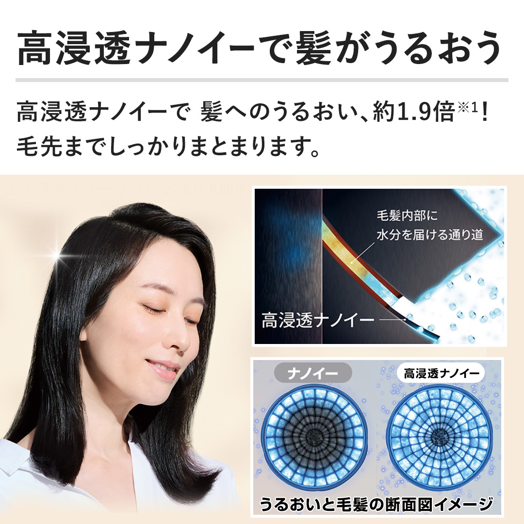 【高浸透ナノイーで髪がうるおう】高浸透ナノイーで 髪へのうるおい、約1.9倍!毛先までしっかりまとまります。