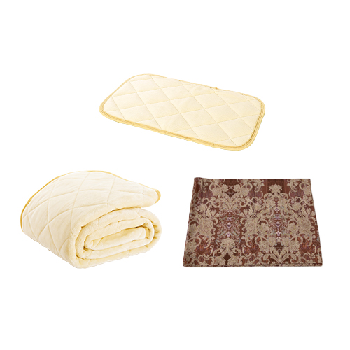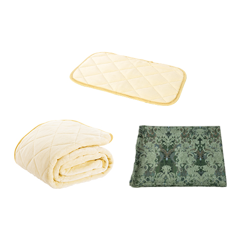 ・敷パッド・枕パッド・カバーともに素材は表地、裏地ポリエステル100%です。