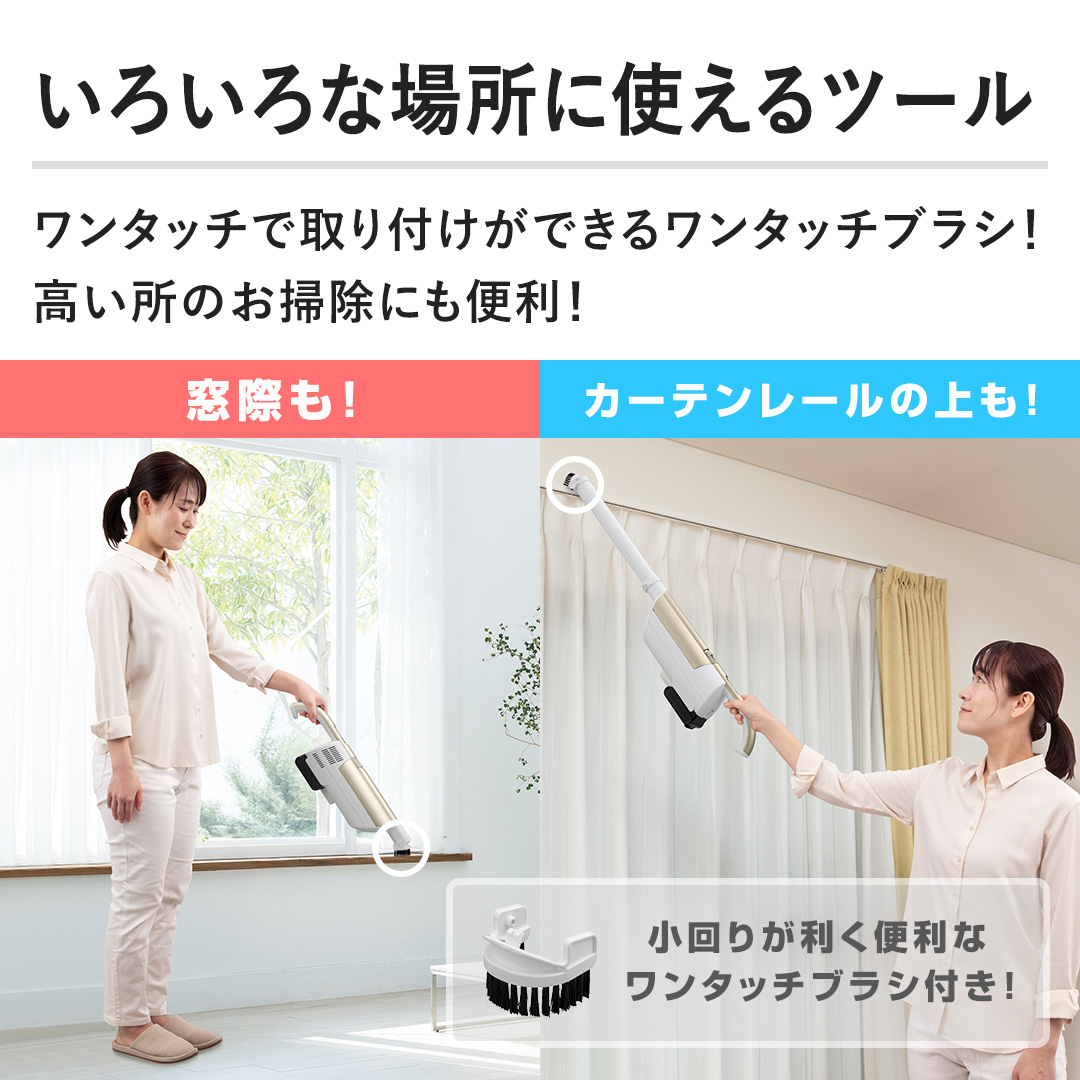 【いろいろな場所に使えるツール】ワンタッチで取り付けができるワンタッチブラシ!高い所のお掃除にも便利!