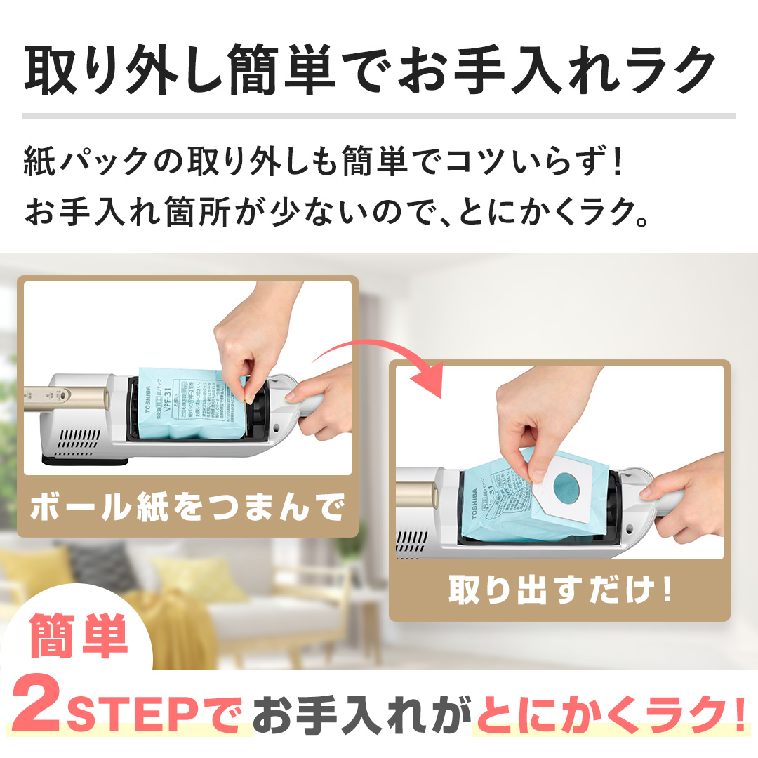 2東芝こだわりの紙パックで、お掃除がとにかくラクに!