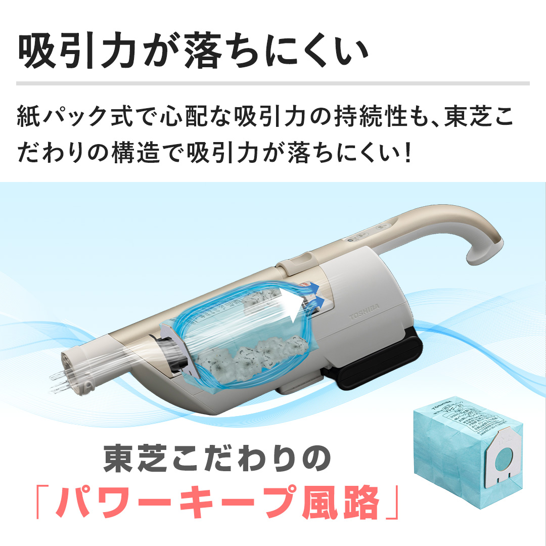 【吸引力が落ちにくい】紙パック式で心配な吸引力の持続性も、東芝こだわりの構造で吸引力が落ちにくい!
