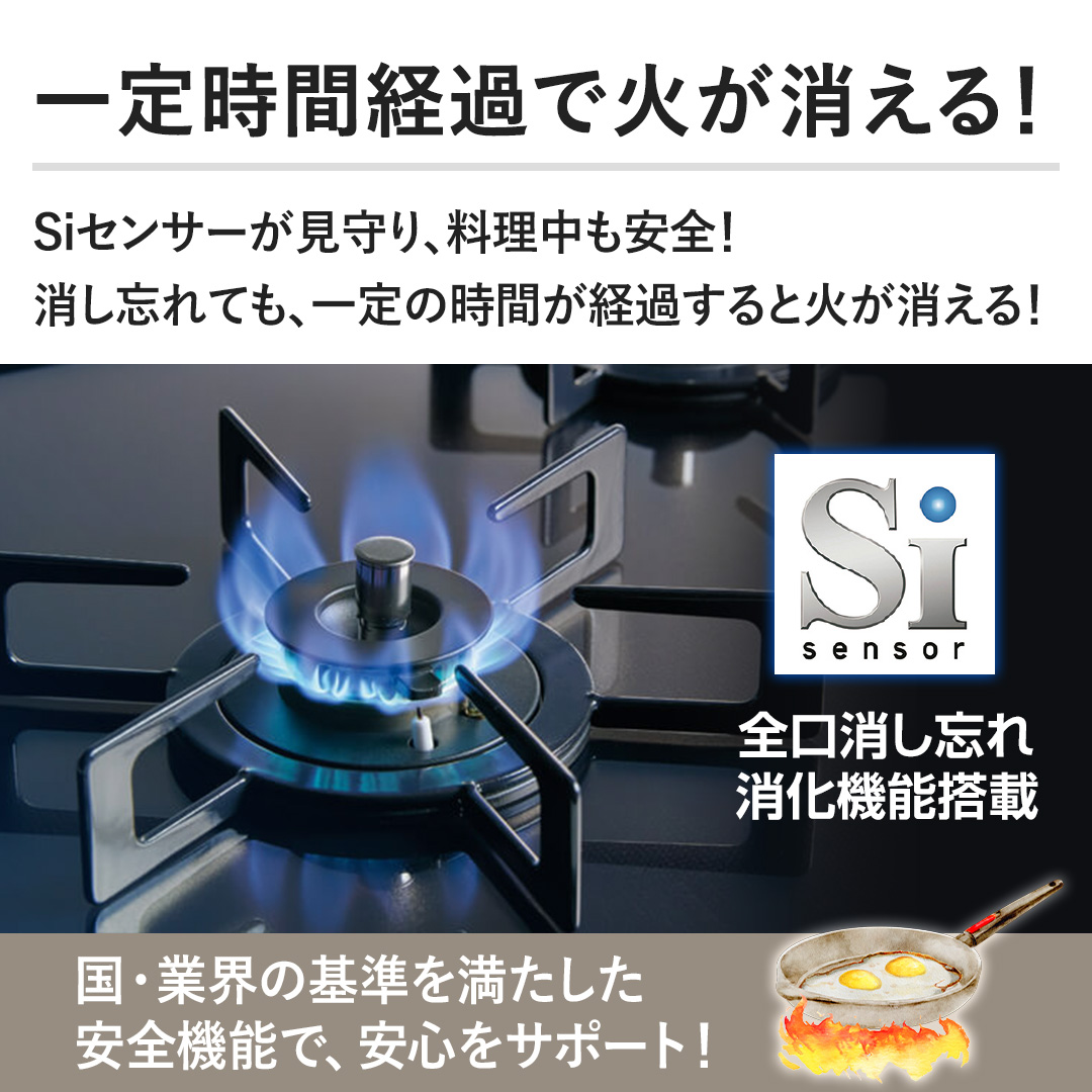 【一定時間経過で火が消える!】Siセンサーが見守り、料理中も安全!消し忘れても、一定の時間が経過すると火が消える!