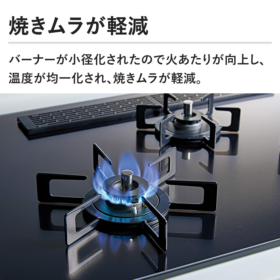 【同時調理もラクに!】従来品よりもバーナー間が広がり、鍋やフライパンがぶつかりにくく、同時調理のストレスが軽減。