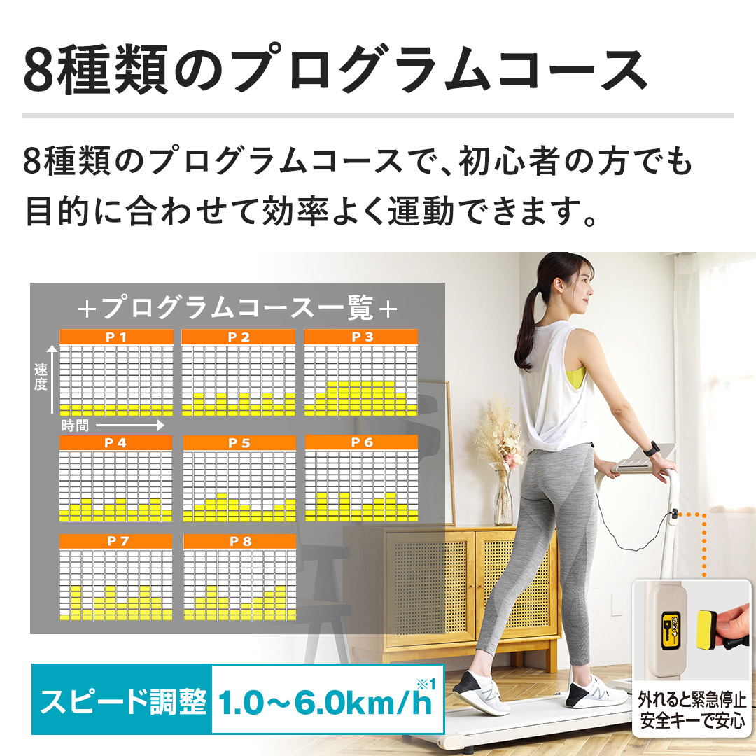 • ※1 プログラムの段階によっては最低速度1.0km/h、最高速度6.0k/hまで調整できない場合があります。