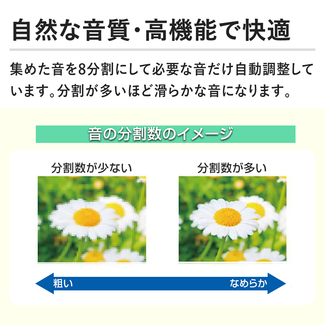 【自然な音質・高機能で快適】 集めた音を8分割にして必要な音だけ自動調整しています。分割が多いほど滑らかな音になります。