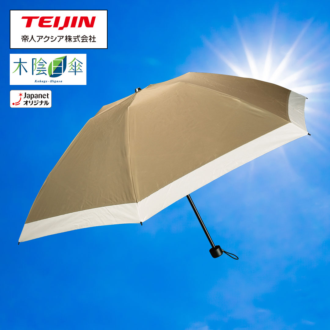 帝人アクシア 木陰日傘 晴雨兼用遮熱折りたたみ傘 ベージュ TZPS009