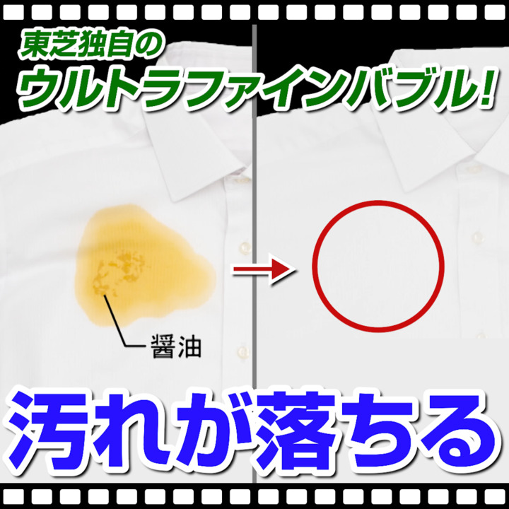 【繊維の奥から汚れをはがし取る!】東芝独自の洗浄技術!目に見えない極小泡が繊維のすき間に洗浄成分を届け、汚れをはがし取ります。