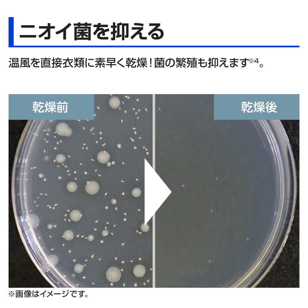 【ニオイ菌を抑える】温風を直接衣類に素早く乾燥!菌の繁殖も抑えます※3。