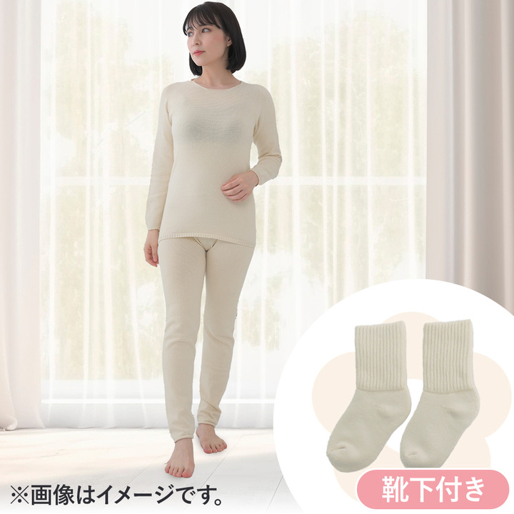 マルエーニット ラ・ク・ラ オーガニックコットン無縫製インナー上下セット(靴下付)女性用 フリーサイズ アイボリー