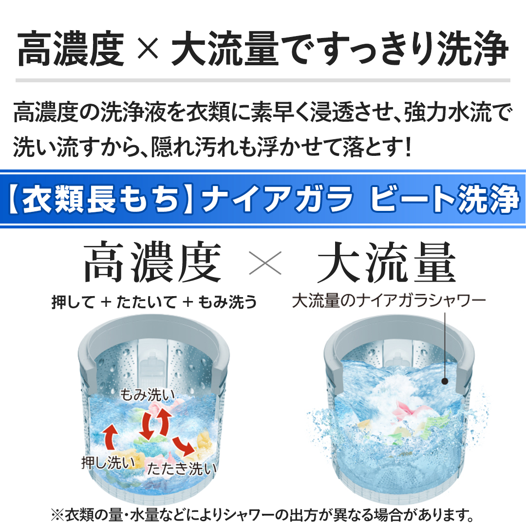 1【衣類長もち】ナイアガラ ビート洗浄で隠れ汚れまで浮かせて落とす!