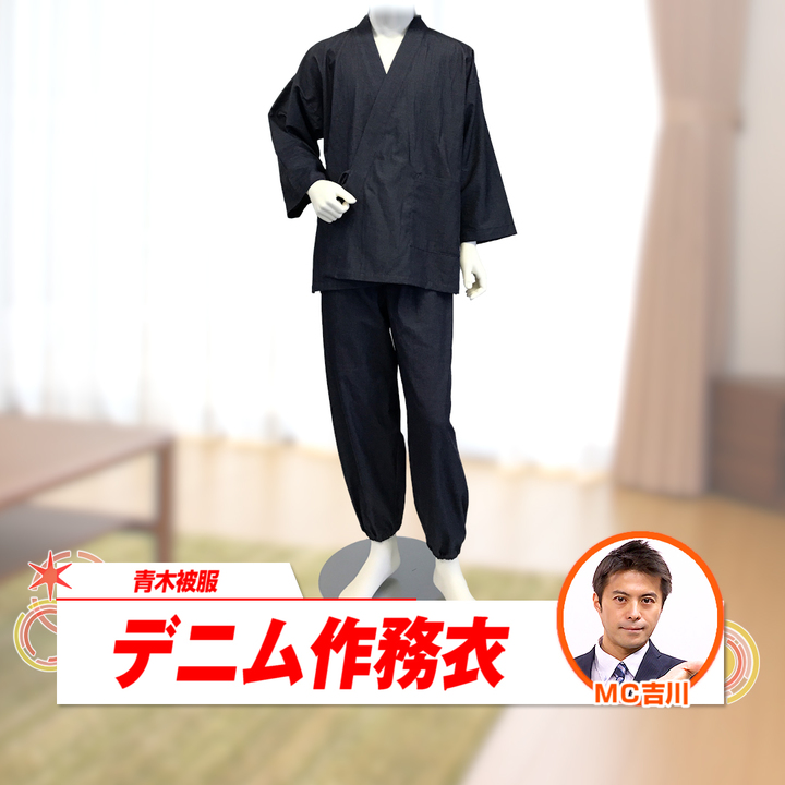 青木被服 デニム作務衣 ユニセックス SS MAS-001J-XS