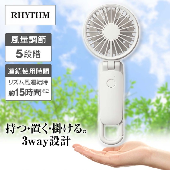 リズム ハンディファン Silky Wind Mobile 4 ライトグレー 9ZF042RH08ハンディファン ダークグレー/日傘クリップ スモークグレーセット