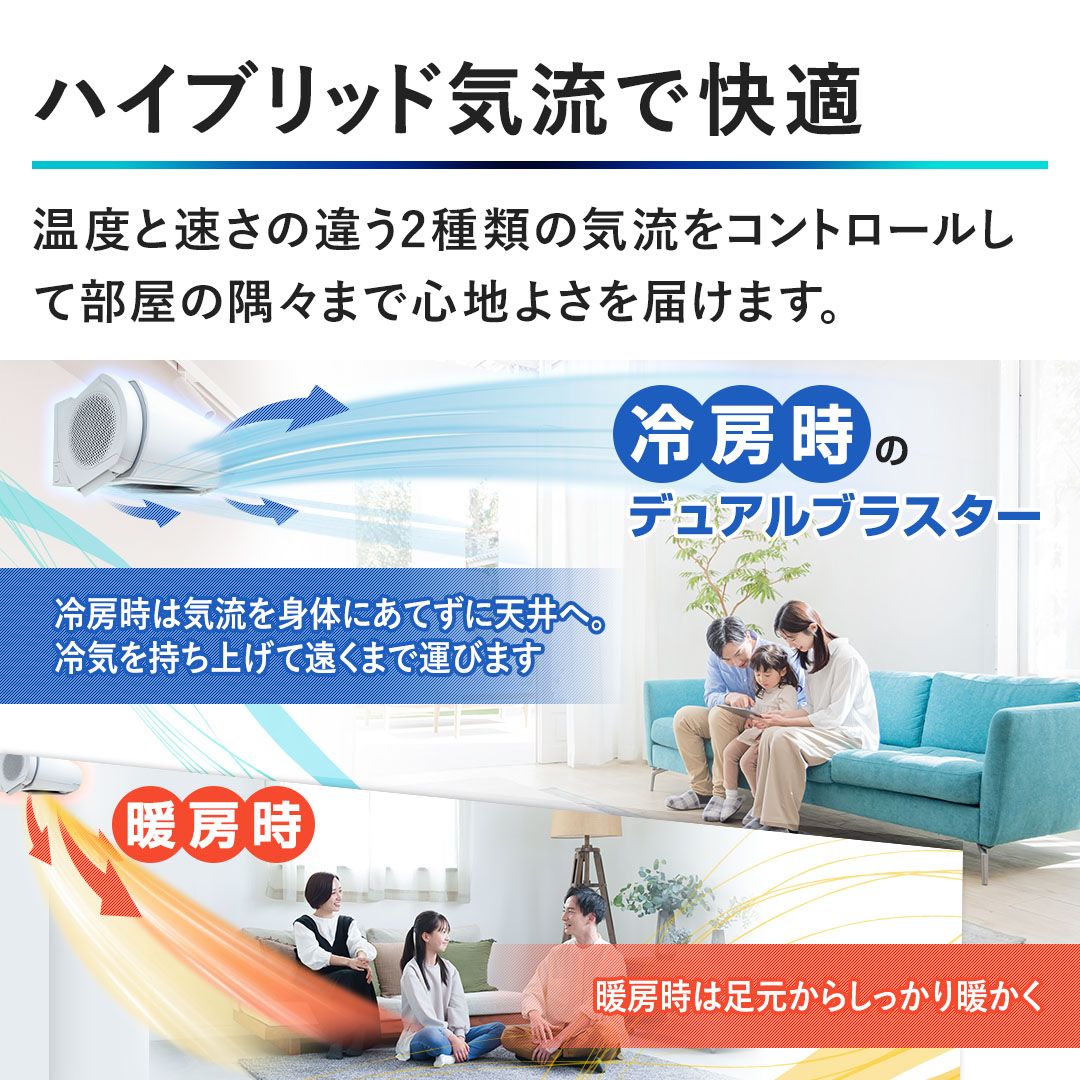 【ハイブリッド気流で快適】温度と速さの違う2種類の気流をコントロールして部屋の隅々まで心地よさを届けます。