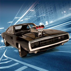 ワイルド・スピード用にカスタムされた1970年式ダッジ・チャージャーR/Tを忠実に再現。内装は、ディテールを丁寧に再現しています。