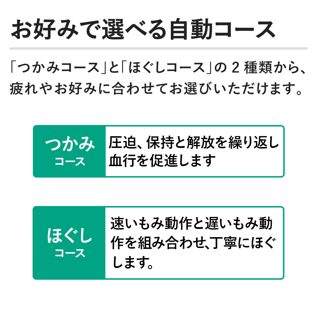 お好みで選べる自動コース。「つかみコース」と「ほぐしコース」の2種類から、疲れやお好みに合わせてお選びいただけます。