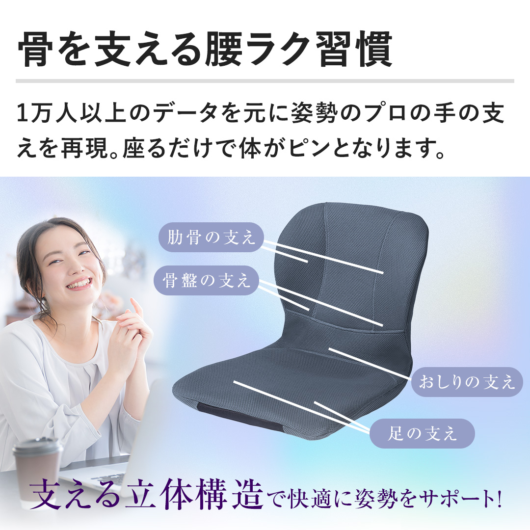 【骨を支える腰ラク習慣】1万人以上のデータを元に姿勢のプロの手の支えを再現。座るだけで体がピンとなります。