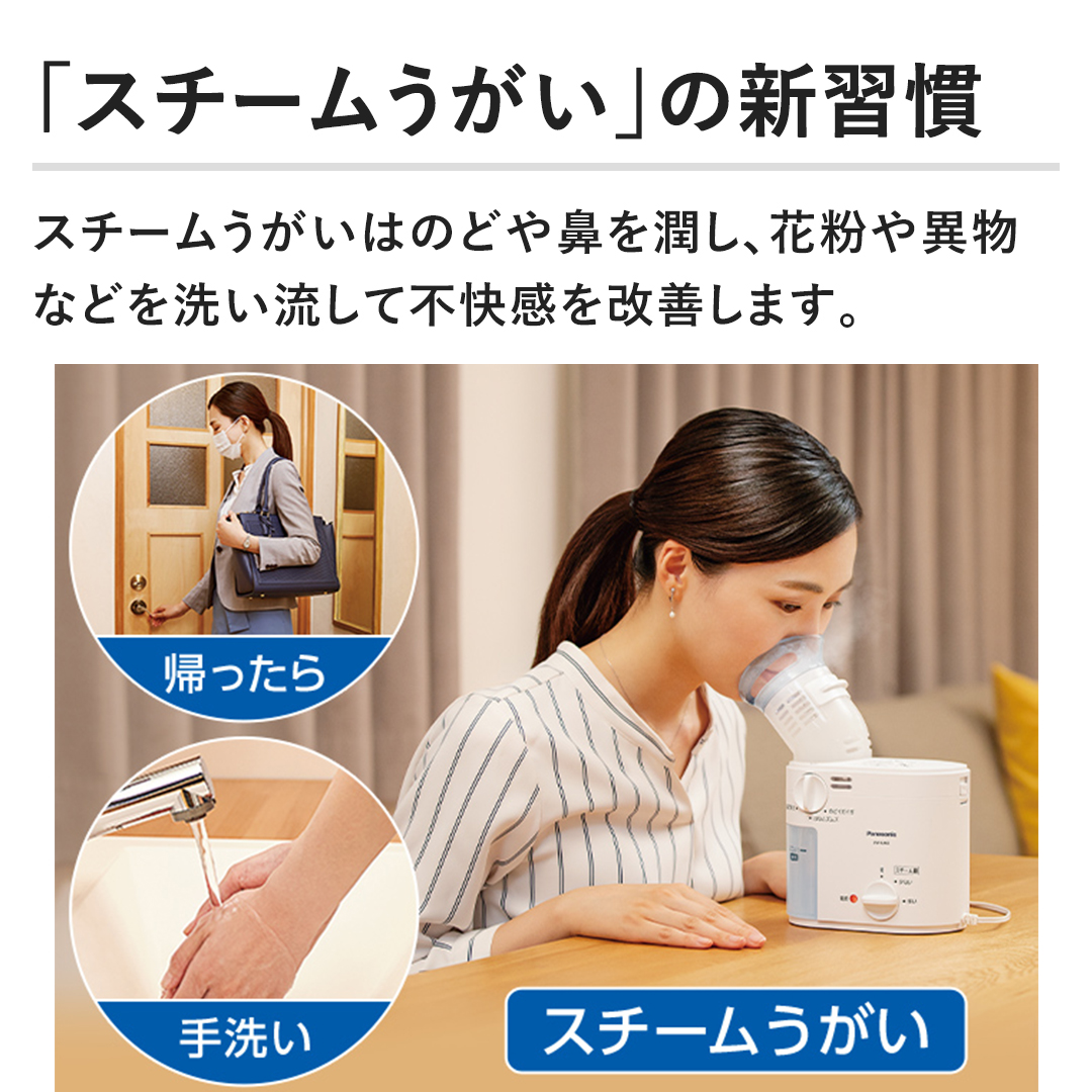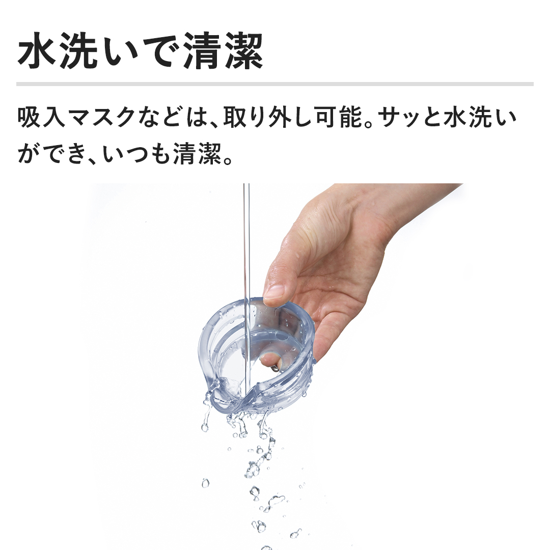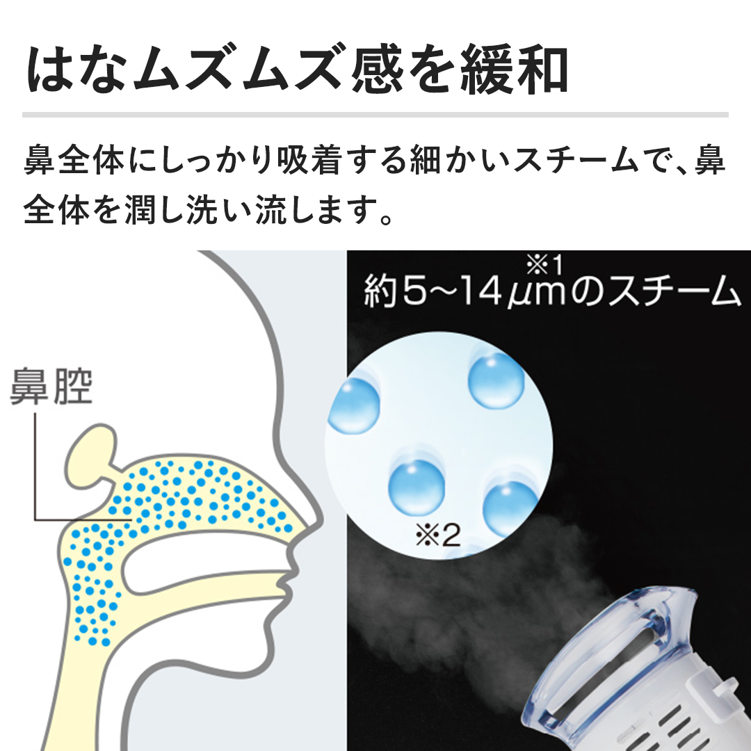 蒸気の程よい温かさでとても気持ちよく潤う。欠点は分解清掃の手間と、スイッチが少し硬い事。ト−タルで見て、性能は満点ですが使い勝手があと一歩な感じです。