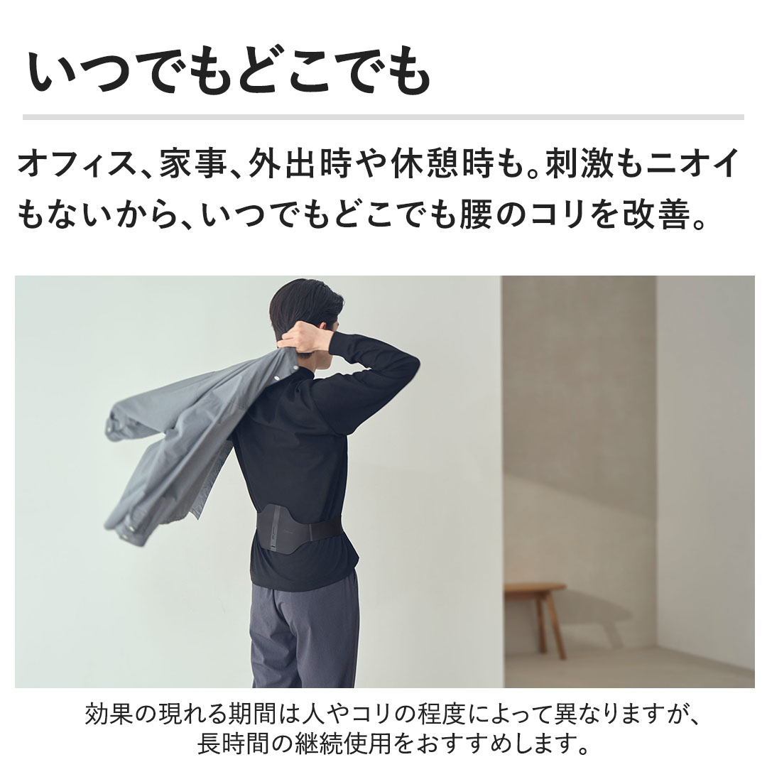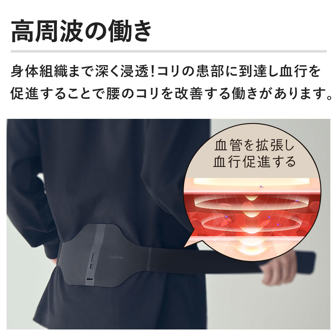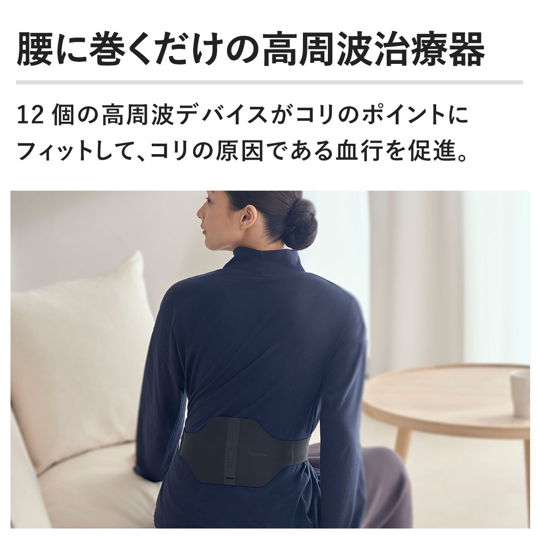 腰に巻くだけの高周波治療器 12個の高周波デバイスがコリのポイントにフィットして、コリの原因である血行を促進。