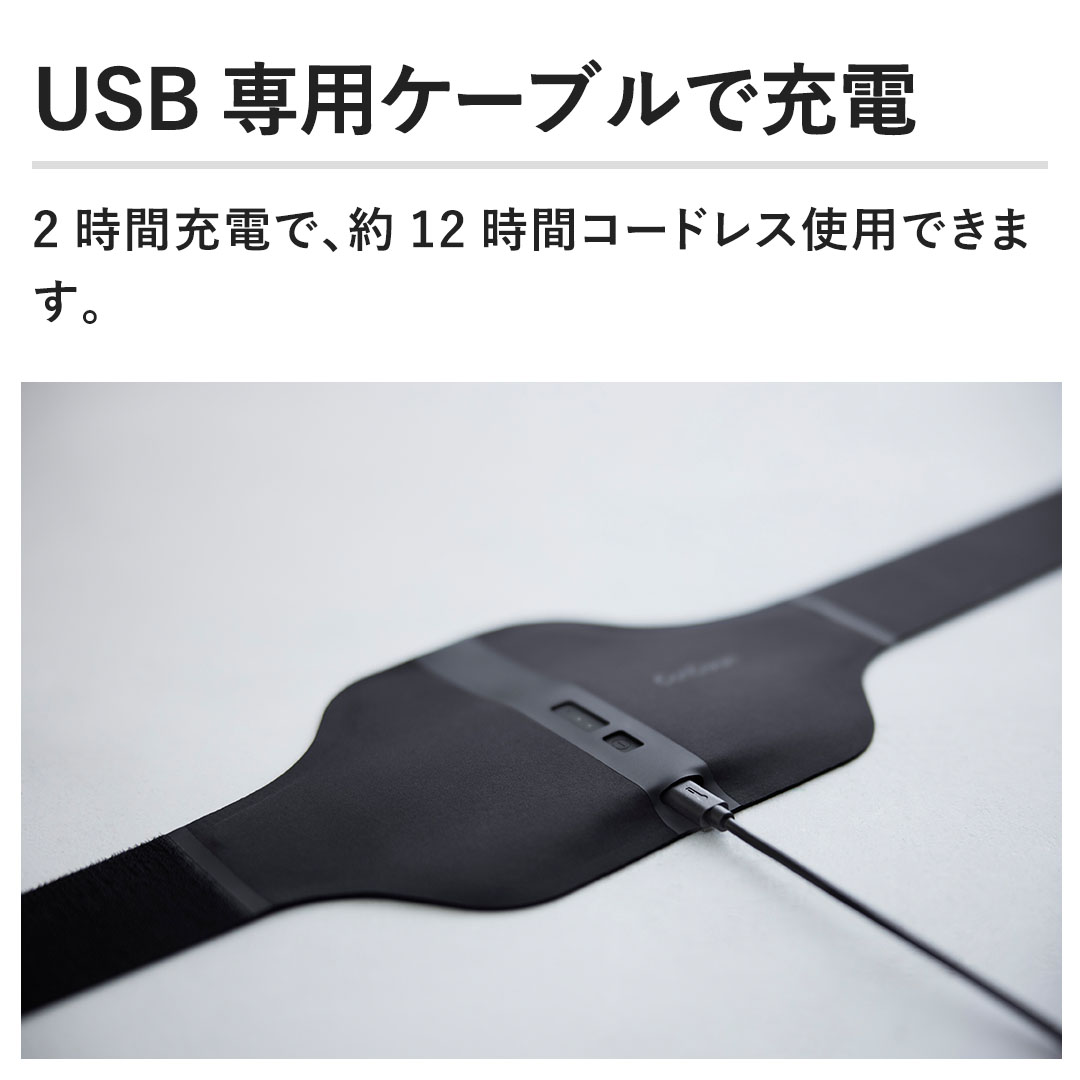 USB専用ケーブルで充電 2時間充電で、約12時間コードレス使用できます。