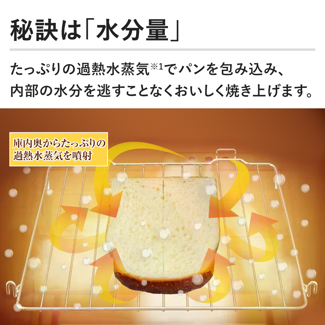 【秘訣は「水分量」】たっぷりの過熱水蒸気でパンを包み込み、内部の水分を逃すことなくおいしく焼き上げます。