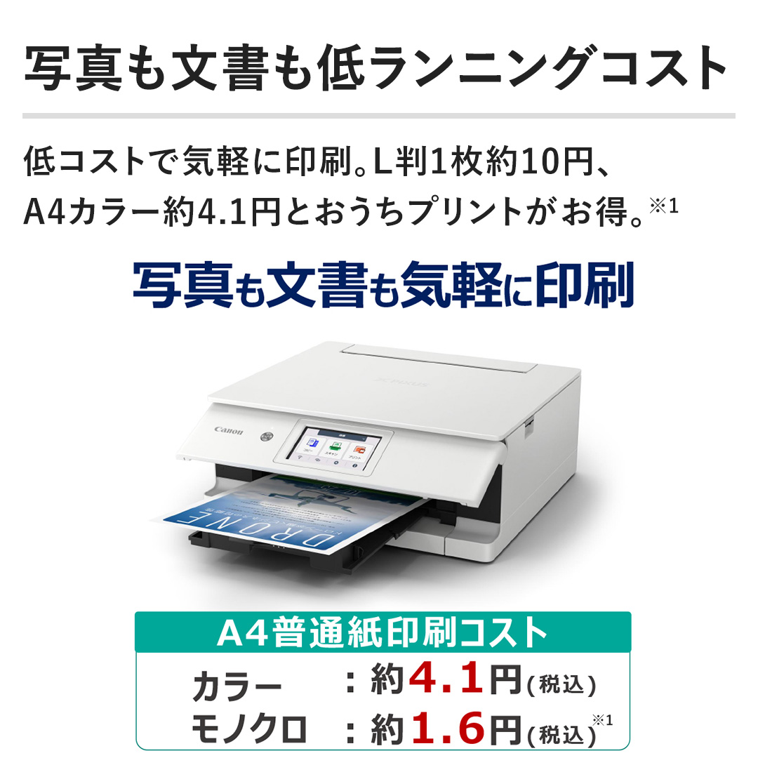 【写真も文書も低ランニングコスト】低コストで気軽に印刷。L判1枚約10円、A4カラー約4.1円とおうちプリントがお得。