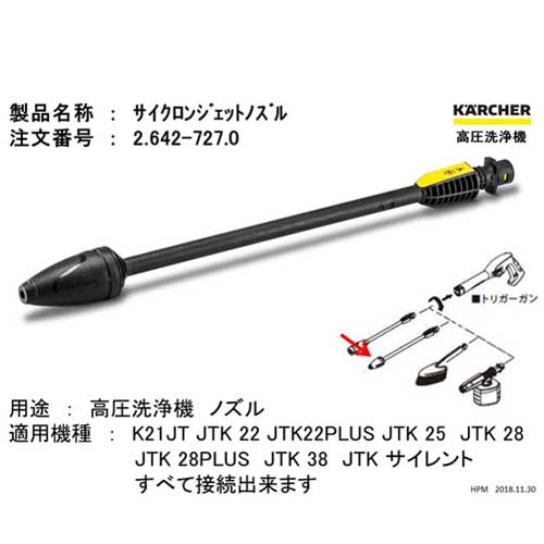 直噴の水を高速回転させながら噴射します。広角のノズルよりも威力があるため、こびりついた汚れの広範な洗浄に最適です。